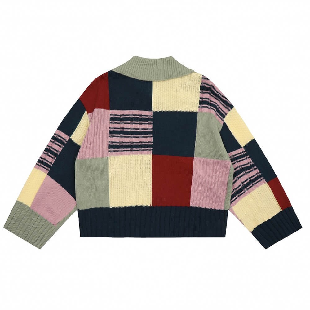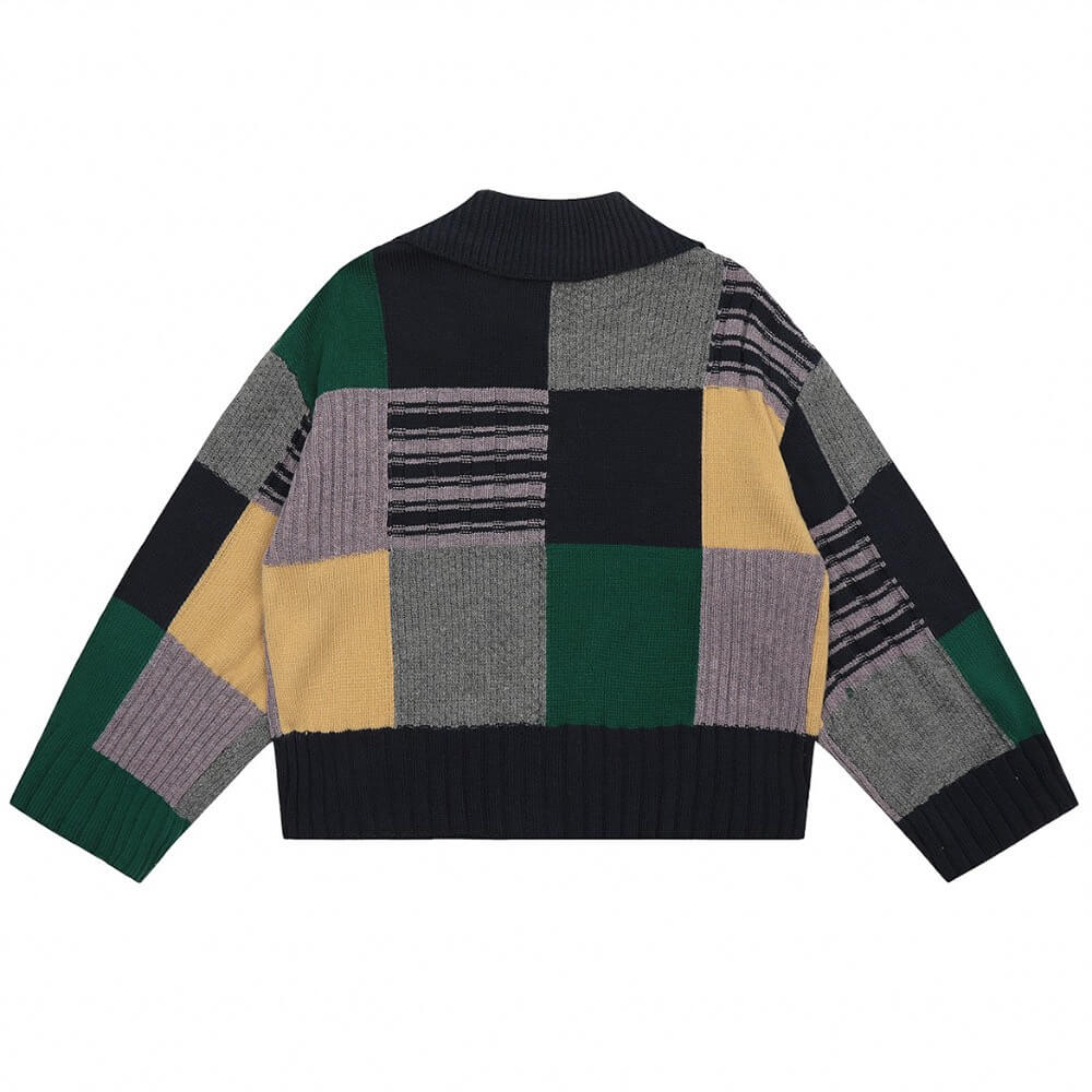 2 Colors Colorblock Plaid Saturn Sweater