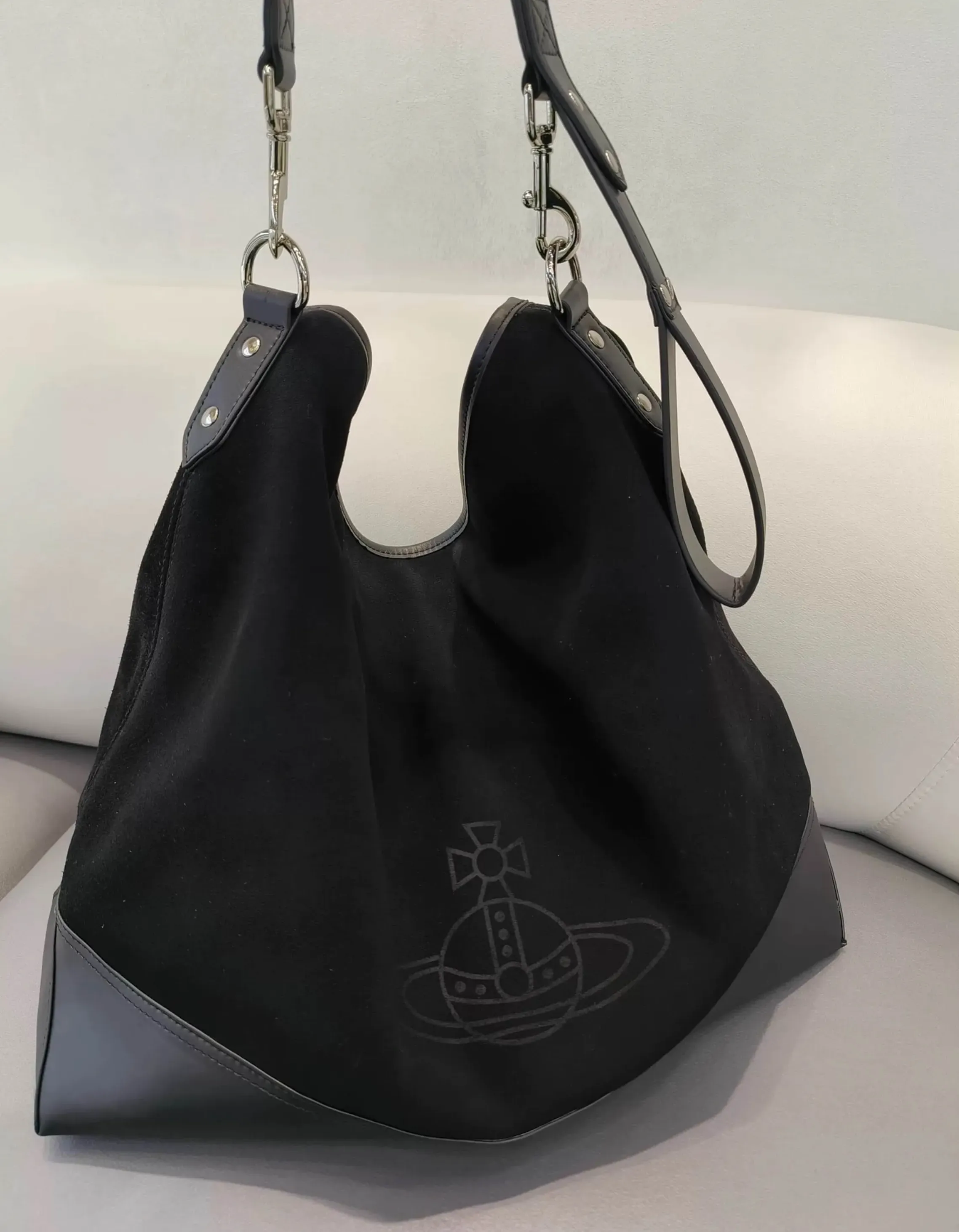 Orb Plaque Black Tote Hobo Bag